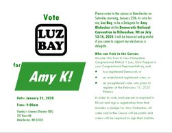 I ran and became one of the eight members of the New Hampshire District 1 Delegate slate for Senator Amy Klobouchar. After the NH Presidential Primary, only the top man (Chuck Knox) and and woman (Erica de Vries) vote getters became District 1 delegates. So I ran again as a Party Leader or Elected Official (PLEO) delegate. Sen. Klobouchar's Districts 1 and 2 Delegates elected me. It was a long process, but I made it. The Presidential Convention was virtual on August 17--20, 2020.