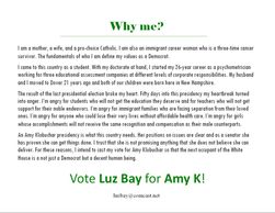 I am a mother, a wife, and a pro-choice Catholic. I am also an immigrant career woman who is a two-time cancer survivor. The fundamentals of who I am define what I bring to the leadership of the Dover Democrats.